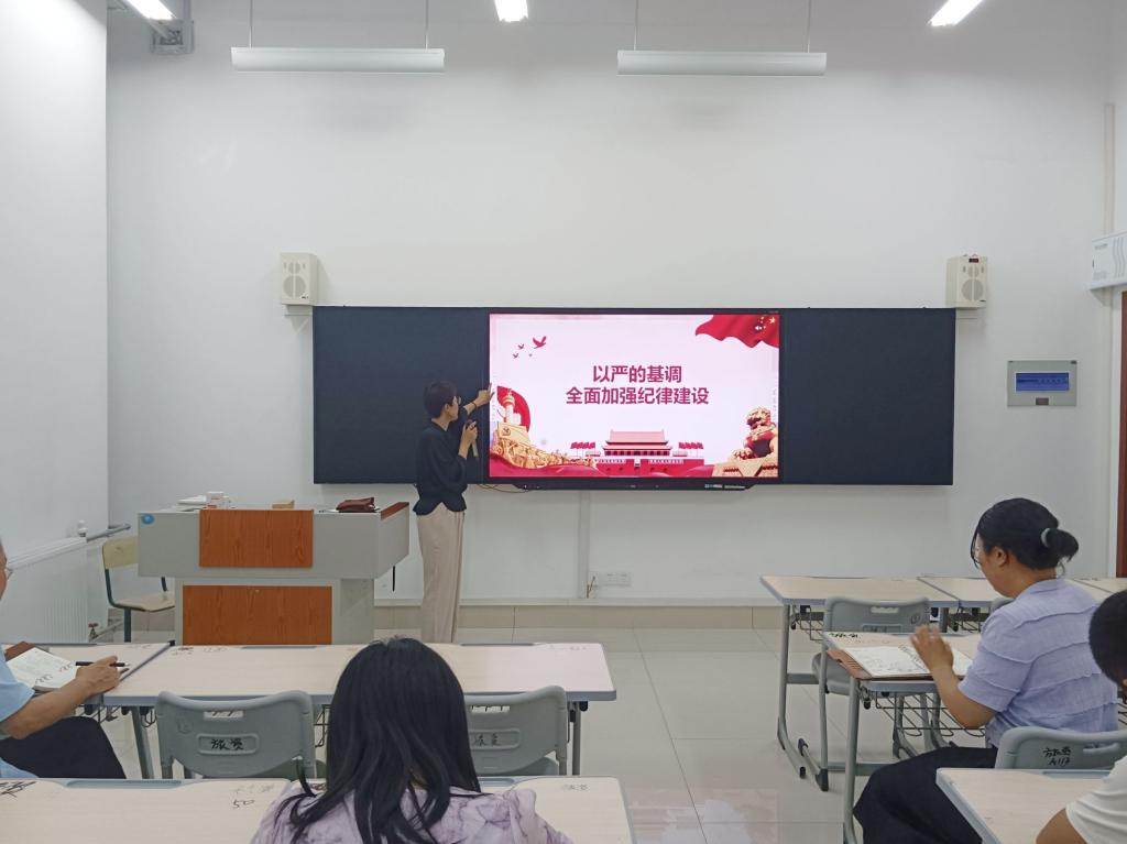 在党课教育中,韩建敏强调了高度重视党纪学习教育的重要性,指出这是党的优良传统,也是当前和今后一个时期的重要任务。她结合实际案例,深入剖析当前党风廉政建设和反腐败斗争面临的形势和任务,提出了加强纪律建设的具体要求。随后,她鼓励全体党员将学习成果转化为工作动力,以更加饱满的热情和更加扎实的工作作风,推动学院各项工作取得新进展。同时,她要求大家加强自我监督,时刻保持清醒的头脑,做到心中有戒、行有所止。党课结束后,全体党员共同观看了警示教育片,大家深刻认识到了违纪违法行为的严重性和危害性,进一步增强了遵规守纪的自觉性和坚定性。