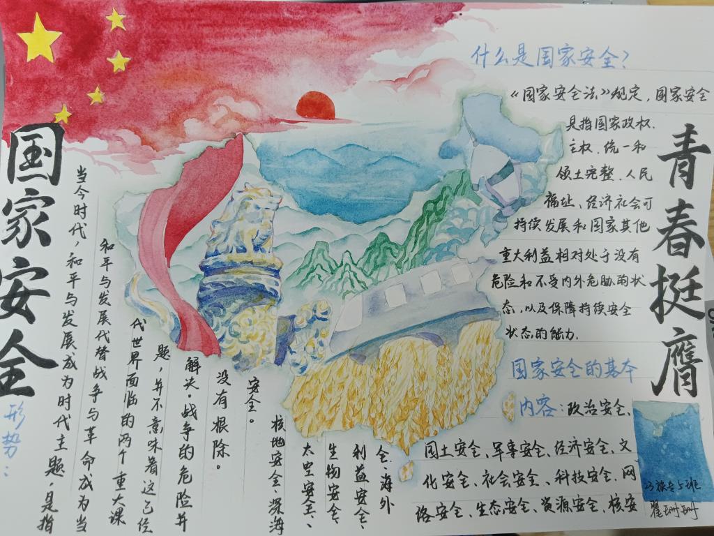 为深入贯彻落实习近平总书记关于加强国家安全教育的重要指示批示精神,切实提升学生国家安全意识和素养,推动总体国家安全观深入人心,4月9日,yl23455永利集团开展“国家安全,青春挺膺”手抄报比赛活动,此次活动由2022级和2023级全体学生参加。