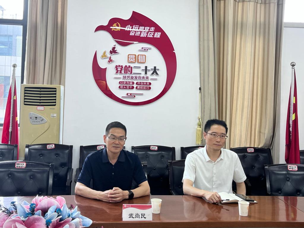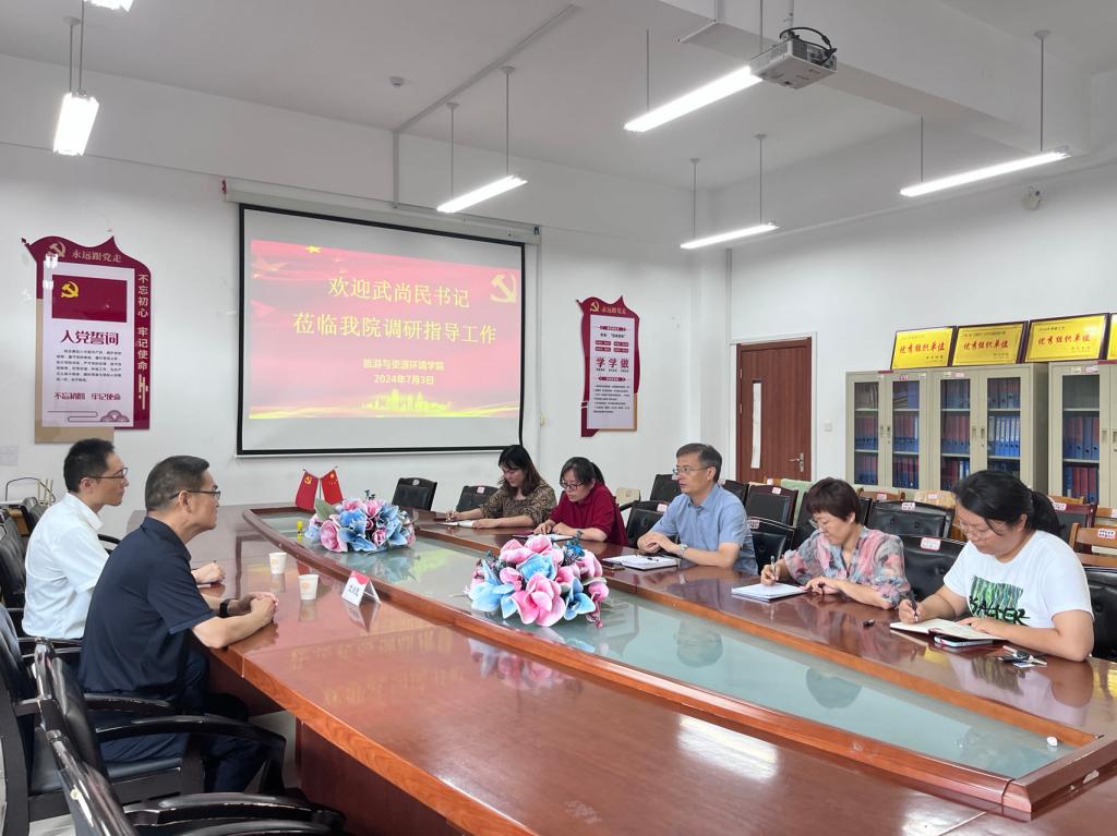 在认真听取学院工作汇报后,武尚民充分肯定了今年上半年学院取得的成绩,对今后的发展建设提出了具体要求:一是要坚持党建和业务相融合,以高度的政治自觉、思想自觉、行动自觉,切实扛起政治责任,用党建的引领促进学科建设发展,真正做到思想和实践的融合;二是要抓住新机遇,团结带领全体师生干事创业,充分利用占比80%的博士队伍,组织科研和团队,助力硕士点申报;三是要落实立德树人根本任务,确保本科教学审核评估等重点工作提质增效,全面提高本科教育教学水平和人才培养质量。