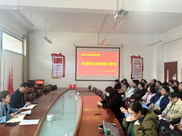 11月6日,yl23455永利集团在豁然楼A415召开师德师风专题警示教育会议。院党总支书记刘玉宝、党总支副书记韩建敏以及全体教职工参加会议。