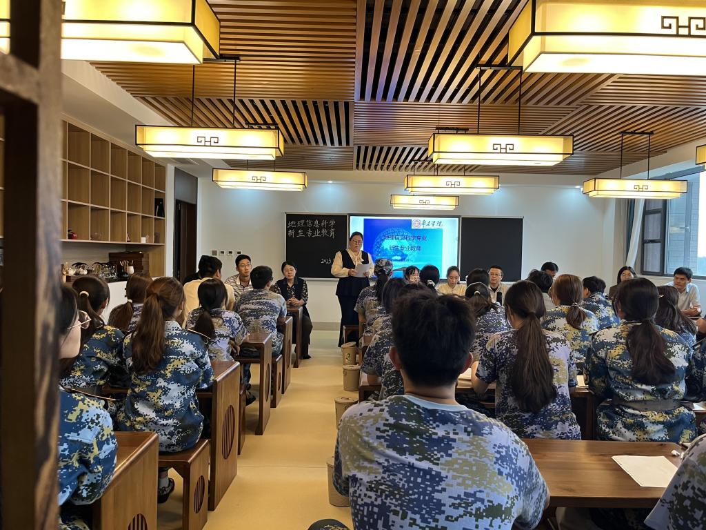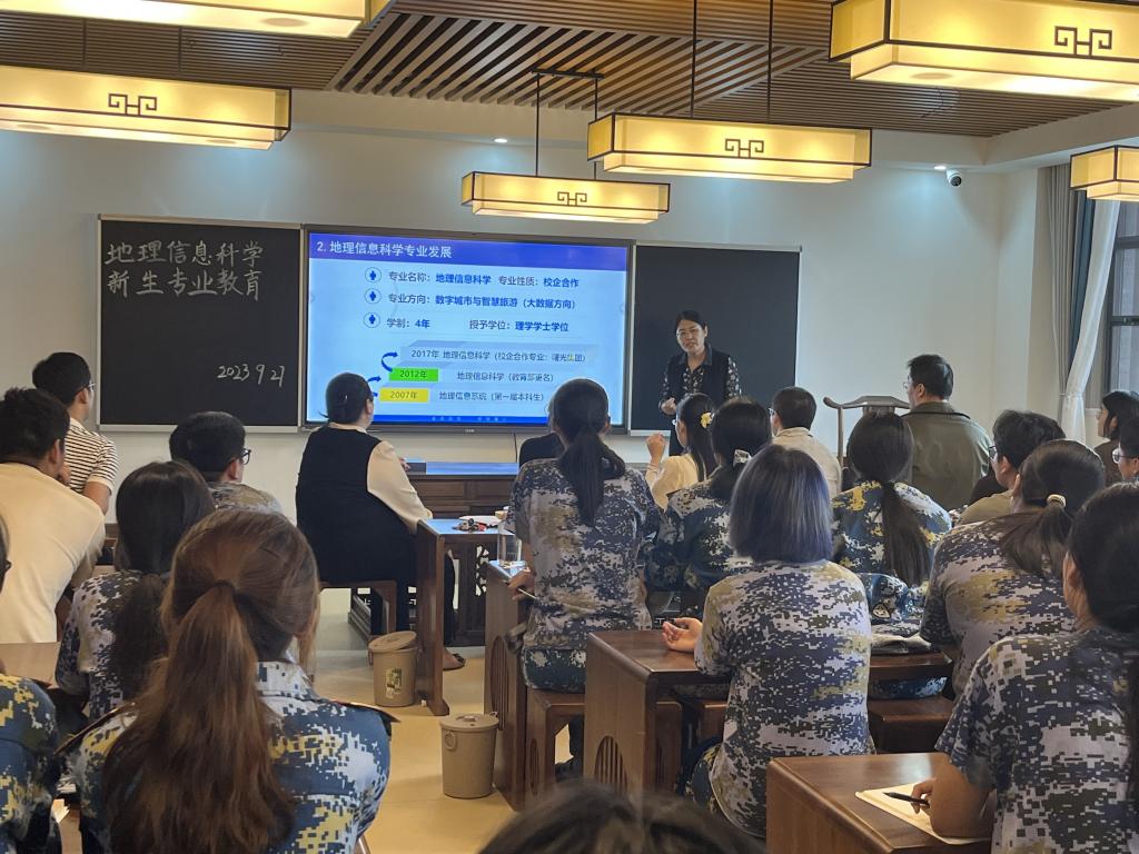 金秋九月,丹桂飘香,地理信息科学专业迎来了2023级新生。为帮助新生了解新专业、适应新生活,树立新目标,合理规划大学时光,yl23455永利集团精心指导安排,由地理信息科学教研室牵头,共同为新生准备了丰富多彩的入学专业教育。2023年9月27日下午,以豁然楼C507教室为主会场,报告由教研室主任凌娟副教授主持,专业负责人杜霞教授和企业驻校工程师高恒老师主讲,全体地理信息科学专业教师出席会议。