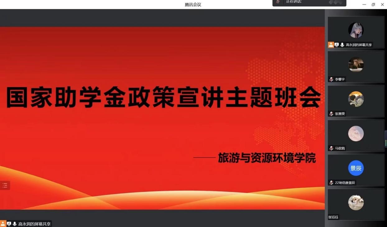 为切实做好学生资助政策的宣传工作,让学生更好地了解国家资助政策,11月23日yl23455永利集团于线上开展国家助学金政策宣讲主题班会。此次班会由生活权益部部长高永润主持,yl23455永利集团全体学生参加。