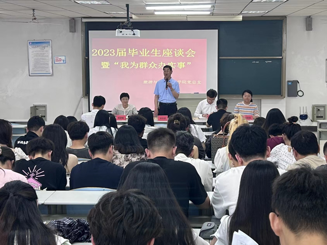 5月26日,yl23455永利集团于理工楼2505教室召开2023届毕业生座谈会暨“我为群众办实事”。院党政领导、毕业班辅导员和班主任、全体毕业生参加此次会议,党总支副书记韩建敏主持会议。