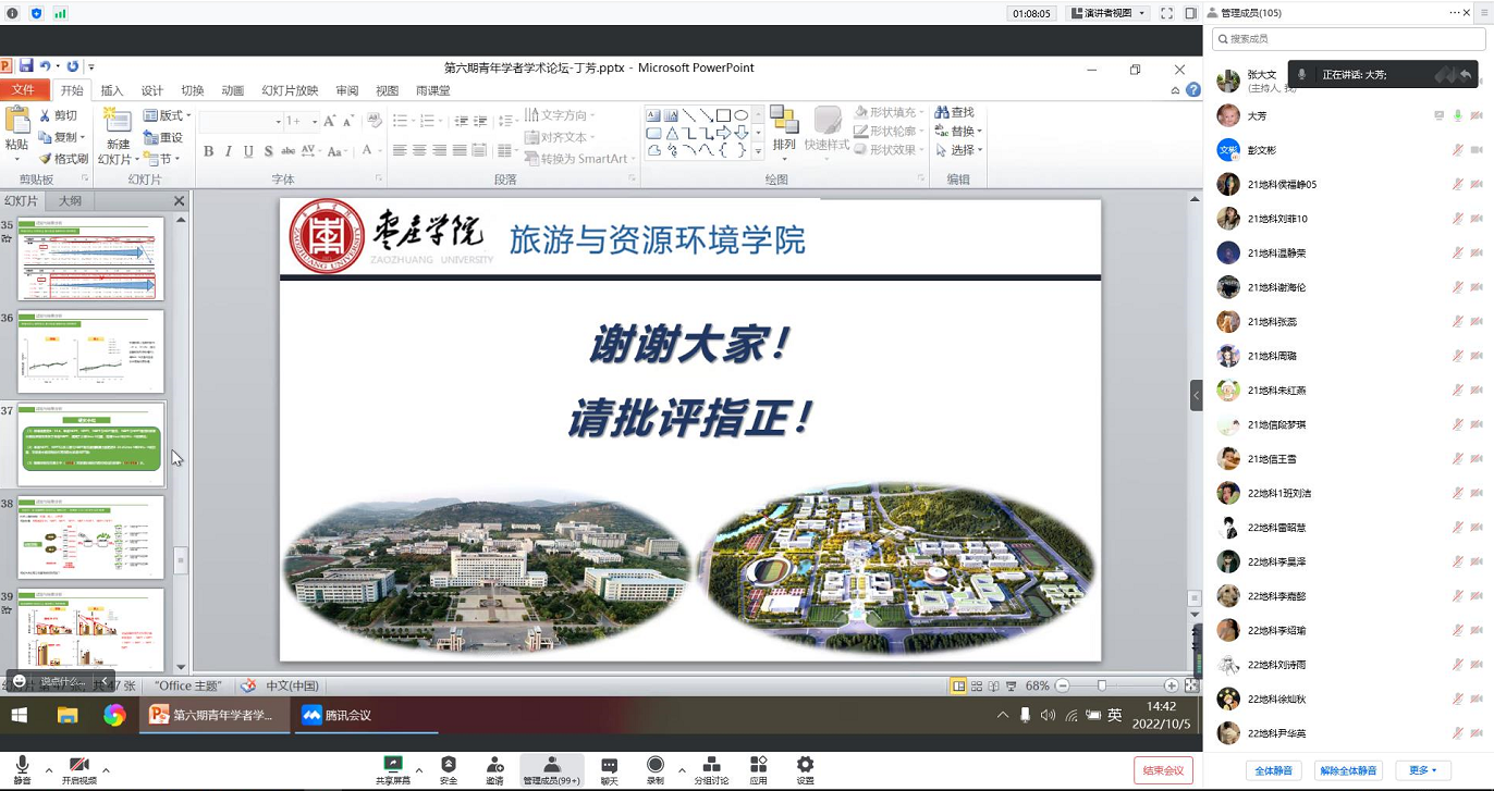 为营造我院严谨、务实、活泼、包容的学术氛围,增进青年科技人员之间的学术交流和知识传播,助力高素质应用型人才培养,yl23455永利集团于10月5日在腾讯会议举办了“第六期青年学者学术论坛”。我院青年博士丁芳担任主讲,学院全体专任教师及部分专业学生共计110余人参加了本次线上报告会。报告会由副院长张大文主持。
