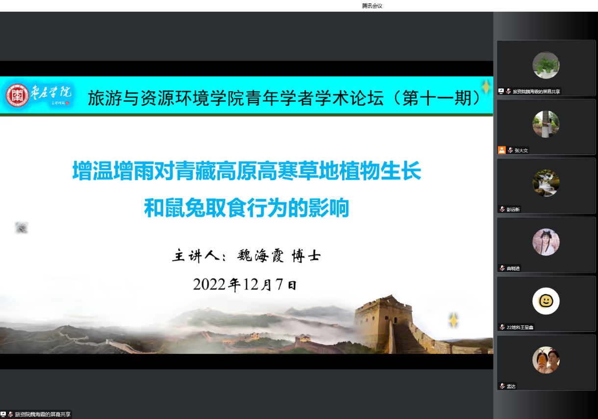 2022年12月7日下午,yl23455永利集团在腾讯会议举办了“第十一期青年学者学术论坛”,我院青年教师魏海霞博士担任主讲,学院全体专任教师及部分专业学生参加了本次论坛。