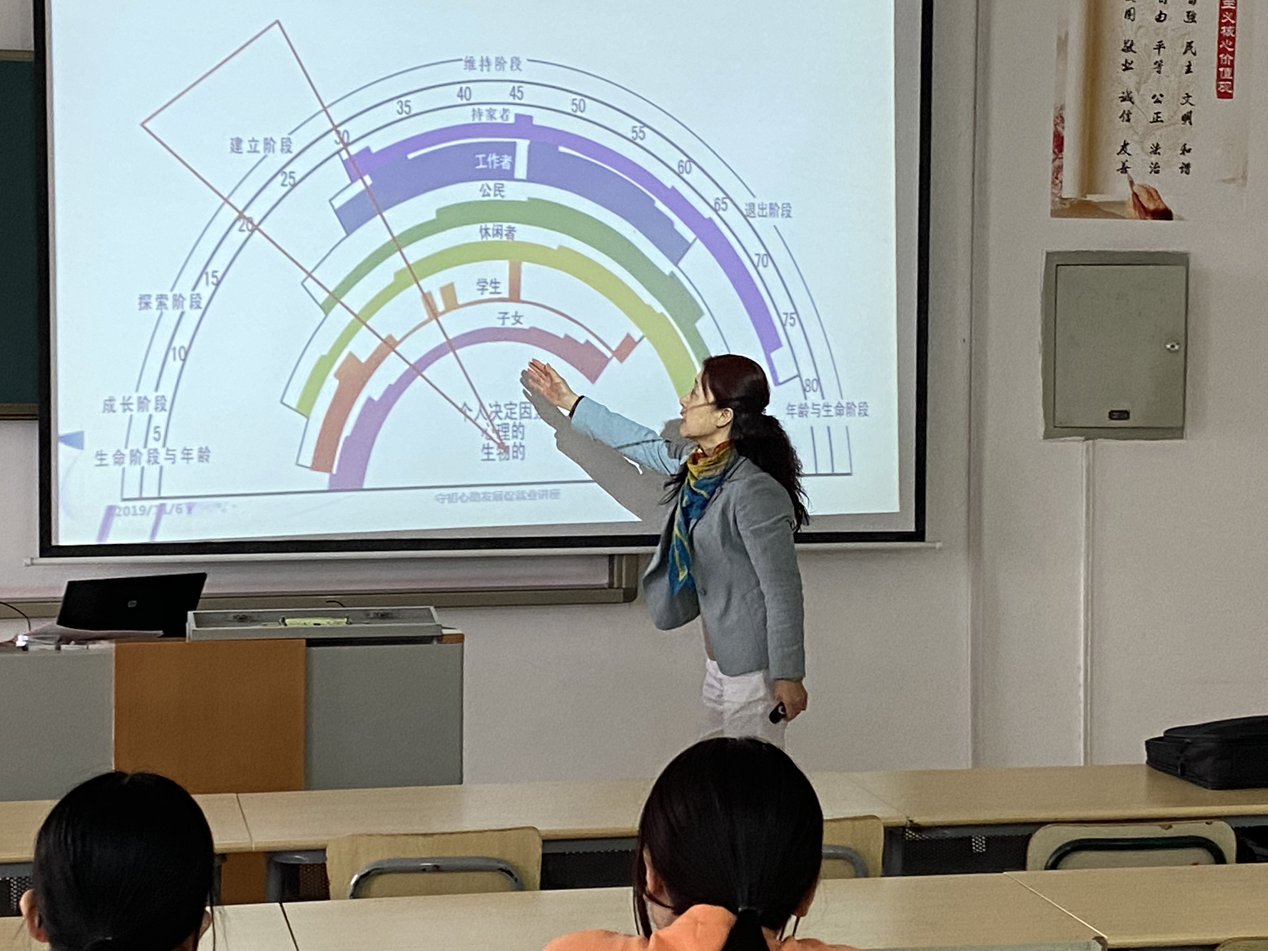 顾老师以往届学生的成功事迹开场,营造了一种愉悦的氛围。围绕当代大学生的困惑、大学阶段与生涯发展、学涯发展的通道以及毕业的出路等方面的问题,顾老师给同学们提供了有效解决办法和建议。