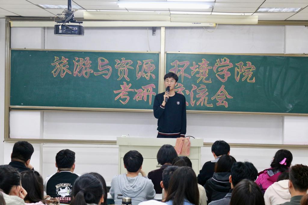 会议伊始,由主持人介绍了旅游学院2019届考研情况。随后三位老师向同学们讲解了考研过程中应注意的事项。老师鼓励大家:考研过程是辛苦的,但也是脱胎换骨的过程,一定要有坚持下去的决心。同学们的重点是要完成在本科阶段还未完成的工作,完成现阶段的学业任务,才能没有后顾之忧地全力准备考研。紧接着考研成功的学生代表发言,介绍初试、复试经验和学校情况,还推荐了一些辅导书和获取考研信息的公众号。最后进入提问环节,老师们和优秀的师哥师姐们采用“一问一答”的方式,有针对性地解决同学们在现阶段存在的各种疑惑,现场气氛十分融洽,同学们受益良多。