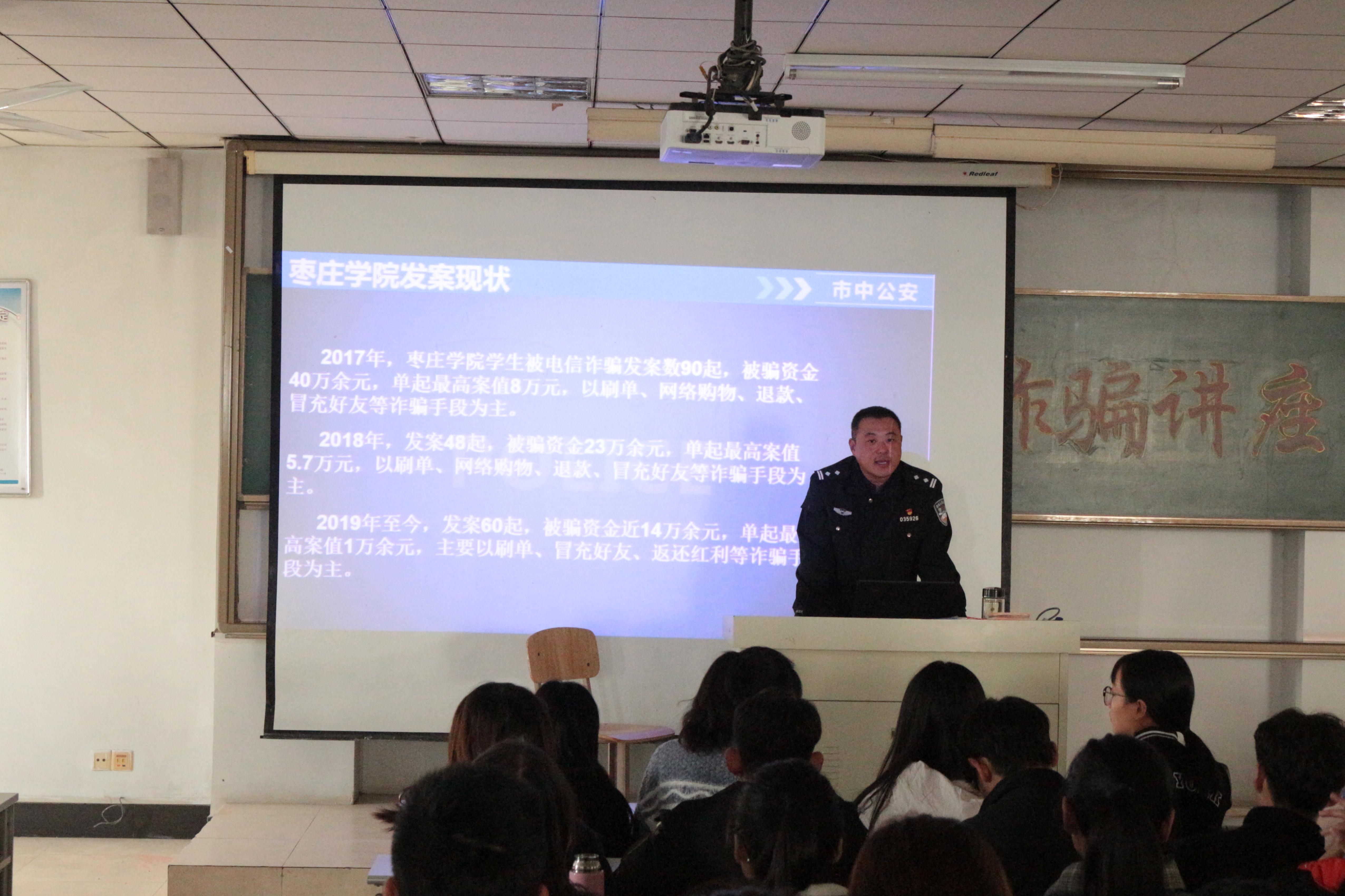 12月4日下午,yl23455永利集团在理工楼2505教室开展防诈骗安全教育讲座。本次讲座由渴口派出所刘鹏教导员主讲,200多名学生聆听了讲座。