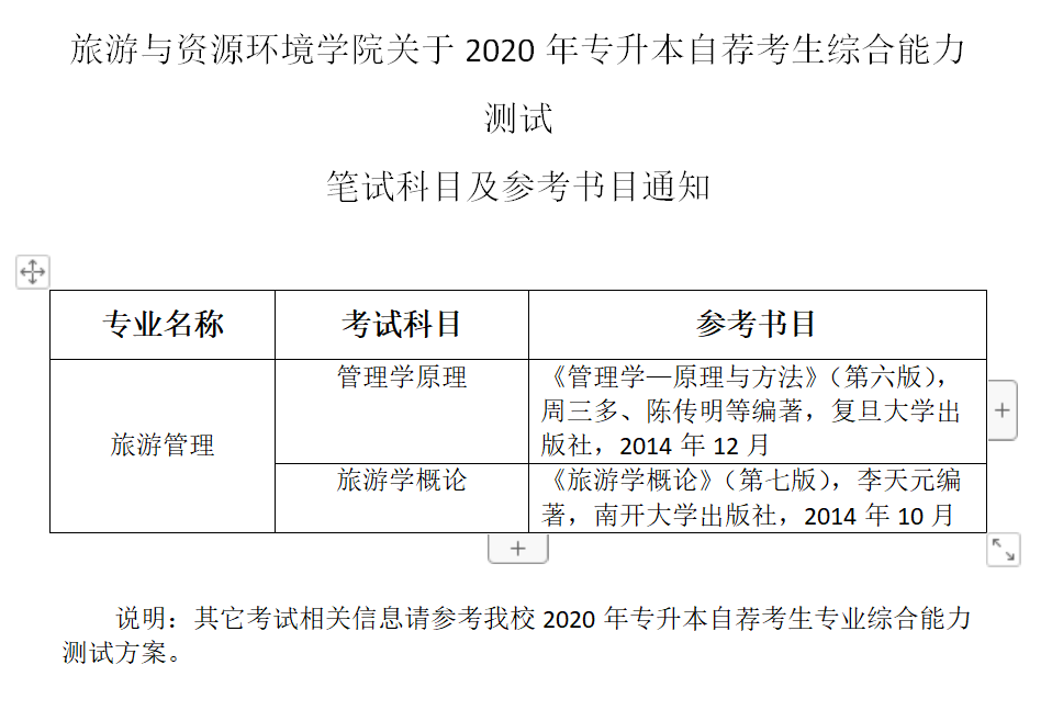 yl23455永利集团关于2020年专升本自荐考综合能力笔试科目及参考书目通知