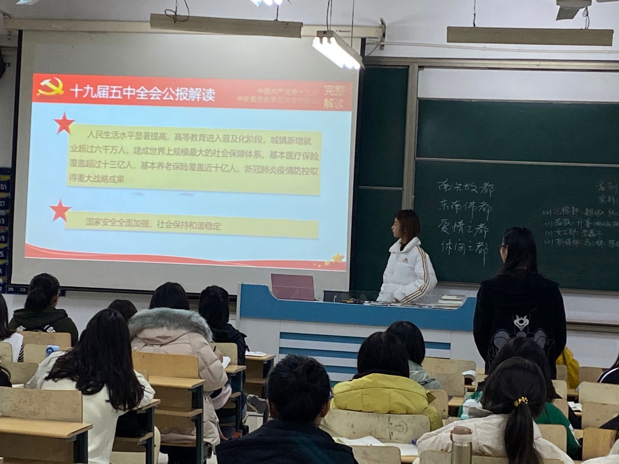 各团支部组织全体团员观看《新闻联播》中关于中国共产党第十九届中央委员会第五次全体会议的新闻视频,使同学们准确直观地把握全会精神实质;通过学习《中国共产党第十九届中央委员会第五次全体会议公报》等文件,广大团员深刻认识到党的十九届五中全会是在全面建成小康社会胜利在望、全面建设社会主义现代化国家新征程即将开启的重要历史时刻召开的一次具有里程碑意义的重要会议,认识到全面建设社会主义现代化国家的必胜决心以及青年成员自身的使命和责任。学习后,各支部团员进行了研讨交流,大家纷纷表示,作为一名新时代的青年团员,要奋发有为,坚定理想信念,勇担时代责任,锤炼高尚品格,坚定不移听党话、跟党走,争做志存高远的追梦人。