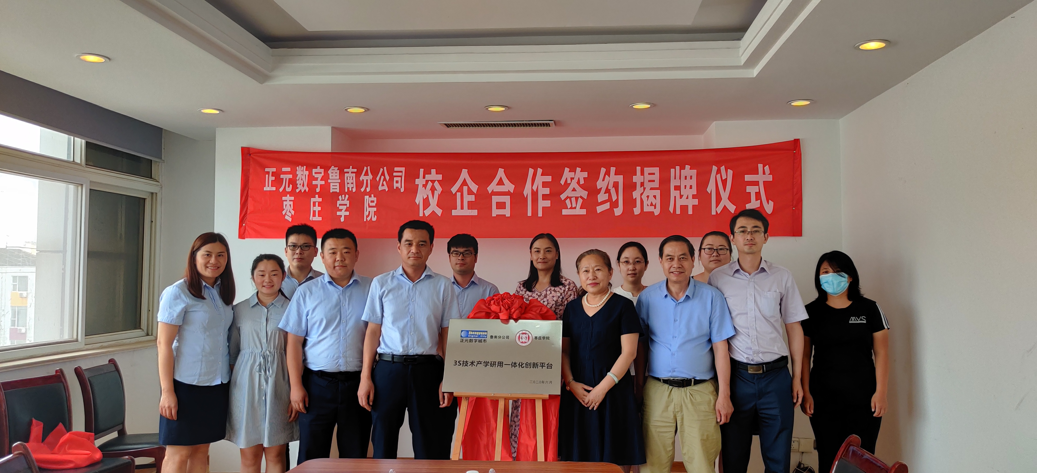 李丽清与赵文更共同为永利集团山东正元数字城市建设有限公司3S技术产学研用一体化创新平台揭牌,yl23455永利集团院长赵全科代表我校与赵文更签署合作协议。