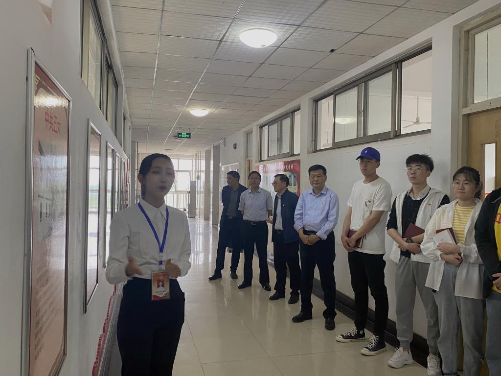 5月19日,省委党史学习教育第四巡回指导组成员苗素军在校党委委员、宣传部部长张昌林陪同下到yl23455永利集团调研指导百年党史文化展大学生宣讲活动。