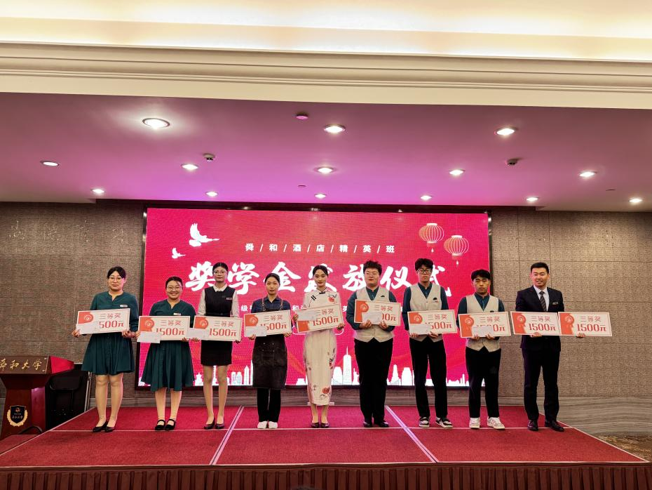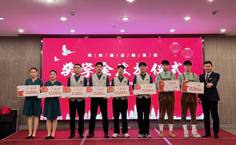 舜和精英班奖学金由山东舜和酒店集团捐资设立,面向yl23455永利集团旅游管理专业(职业经理人方向),旨在奖励品学兼优的学生,激发同学们继续学习的积极性。本次奖学金分为一、二、三等奖,共有28名学生获得4.48万元的奖学金。