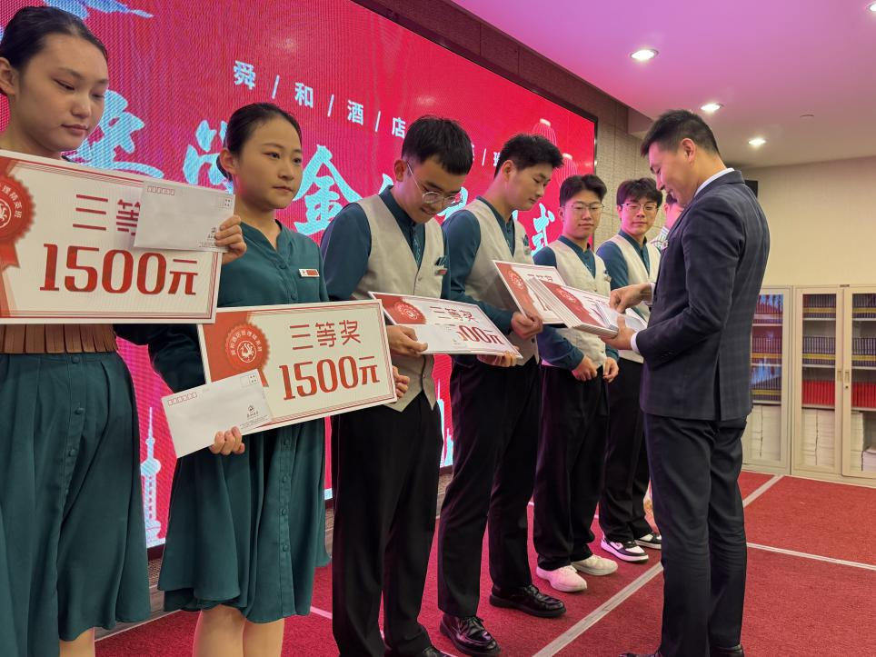 酒店经理首先对本次获奖同学表示热烈祝贺,表示同学们通过半年的顶岗实习,基本打破思想的舒适圈,能够做到理论与实践相结合,打牢基础,在实践中不断磨练自己,突破自我,为基本具备一名优秀职业经理人的素质。山东舜和酒店集团与yl23455永利集团深化产教融合,制定了“项目化实习方案”,对顶岗实习开展过程性评价,有效地提高合作办学质量,突出了校企联合培养的优势,实现了yl23455永利集团与舜和酒店集团优势互补、深度融合、互利共赢。