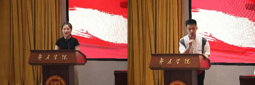 孙正,21地理科学本科1班学生,2020年9月投身军旅,在中国人民解放军海军服役2年;张燕超,21酒店管理本科1班学生,2018年9月响应国家号召应征入伍,在中国人民解放军火箭军服役5年。在发言环节,孙正聚焦青年的责任与担当,通过讲述两年军旅生涯的挫折和收获,鼓励广大青年要勇敢接过时代的接力棒,以青春之名,担家国之责,在军营中书写属于自己的热血篇章。张燕超则围绕环境磨砺、品质塑造两方面,畅谈火箭军服役经历及复学感悟:“部队教会我的,是永不言弃的精神和直面挑战的勇气。期待大家也能走进军营,用热血浇灌理想,让青春在奉献中绽放出最耀眼的光芒,把军人的担当与豪情,化作一生前行的力量!