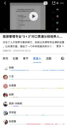 为做好学校对口贯通分段培养工作,促进职业教育与普通教育协同创新、优势互补,2025年7月26日,yl23455永利集团与枣庄职业学院旅游管理系开展了旅游管理专业“3+2”贯通培养人才培养方案线上研讨会。我院副院长孙盼盼、枣庄职业学院旅游管理系主任赵颜、山东文旅集团数字未来发展有限公司营销总监李安超,以及学院教学科研办公室主任、专业负责人、教研室主任等相关人员参会。