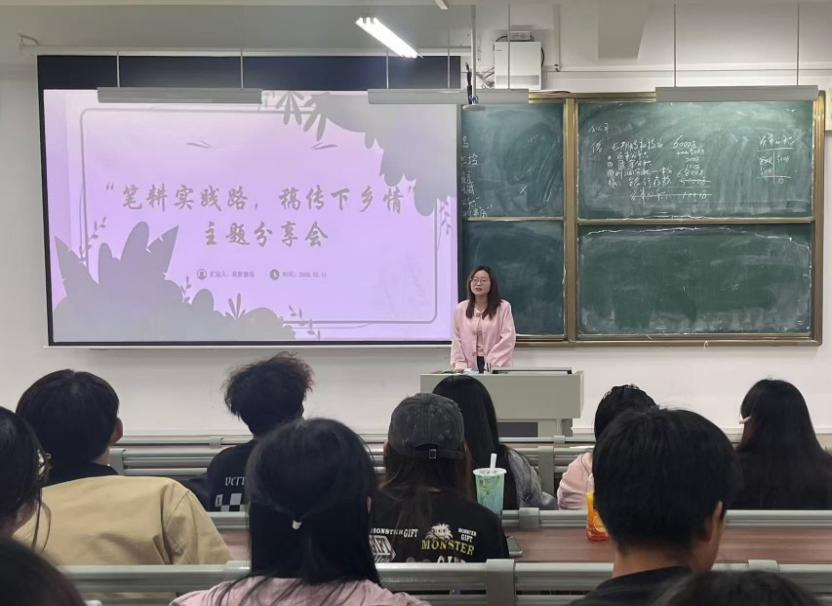 4月16日《笔耕实践路 稿传下乡情》主题课程由我院团学干部周薛静茹主讲。主讲人以基层实践手稿、乡村振兴案例为鲜活素材,向青马学员阐释“以笔传情、以实践践诺”的价值内核,明晰“扎根乡土、记录真情”的核心要义。勉励同学们以实践为基、以笔墨为桥,争做扎根基层的“践行者”、传递乡情的“传声筒”,在笔耕实践的征程中服务乡村振兴,以青年担当书写乡土情怀。