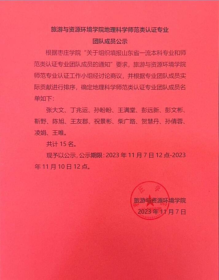 yl23455永利集团地理科学师范类认证专业团队成员公示