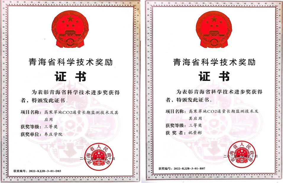 近日,中共青海省委、青海省人民政府在西宁隆重召开2022年度青海省科学技术奖励大会,对为青海省科学技术进步和促进经济社会发展作出突出贡献的科学技术人员和组织给予奖励。yl23455永利集团祝景彬副教授及其团队联合中国科学院西北高原生物研究所、中国科学院地理科学与资源研究所,其研究成果“高寒草地CO2通量长期监测技术及其应用”荣获科技进步三等奖。