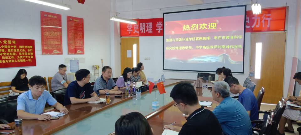 为进一步促进学院专业的内涵发展,落实“学生中心、产出导向、持续改进”的师范专业认证理念要求,实现课程大纲与新修订的中学地理课程标准相衔接,8月21日下午,yl23455永利集团邀请客座教授、枣庄市教育科学研究院地理教研员、中学高级教师刘高峰作专题报告。学院地理科学专业任课教师参加报告会,会议由院长王满堂主持。
