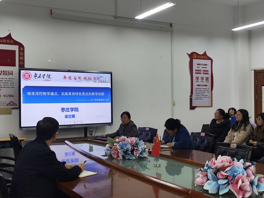 梁兰菊院长以“精准深挖教学痛点,实施具有特色亮点的教学创新”为题,从高校教师教学创新大赛解析、大学物理教学创新大赛、心得体会等方面进行了详细介绍。梁院长指出,教师创新大赛与青年教师竞赛不同,创新大赛需要课程团队通过各种方式深挖教学痛点,并且展示出课程痛点、教学问题的解决方法以及成效。之后梁院长以大学物理课程为例,结合自身参赛经验,从申报书、课堂教学实录视频等方面分享经验与自身体会。