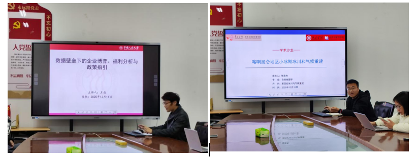 此次沙龙紧密围绕“数据”、“环境”与“治理”三大核心关键词展开。yl23455永利集团张宏杰博士、经济管理学院王成老师分别作了题为《喀喇昆仑地区小冰期冰川气候重建》《数据壁垒下的企业博弈、福利分析和政策指引》的学术报告。两场报告虽分属不同学科领域,却在此次沙龙的主题下产生了深刻的共鸣与对话。无论是重建历史气候所需的自然数据解码,还是优化当下经济治理面临的社会数据规制,都凸显了“数据”作为核心研究对象和研究工具的双重属性,以及“治理”思维在应对环境与社会复杂性中的关键作用。