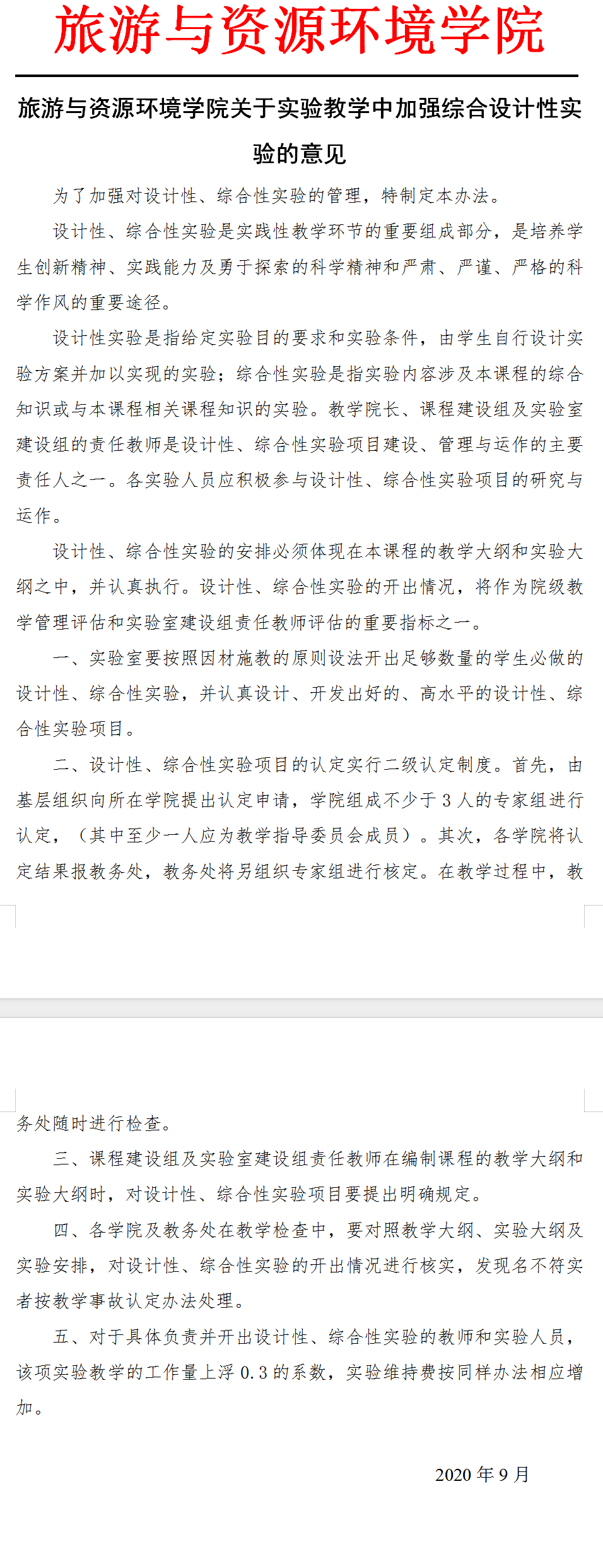yl23455永利集团关于实验教学中加强综合设计性实验的意见