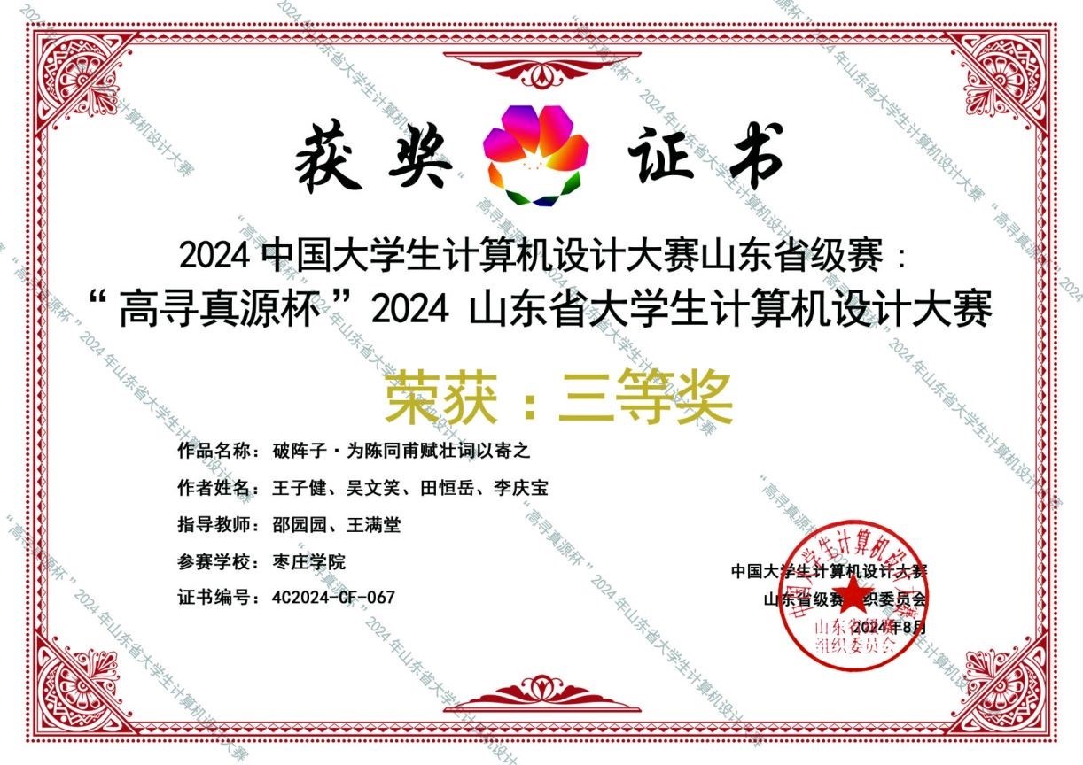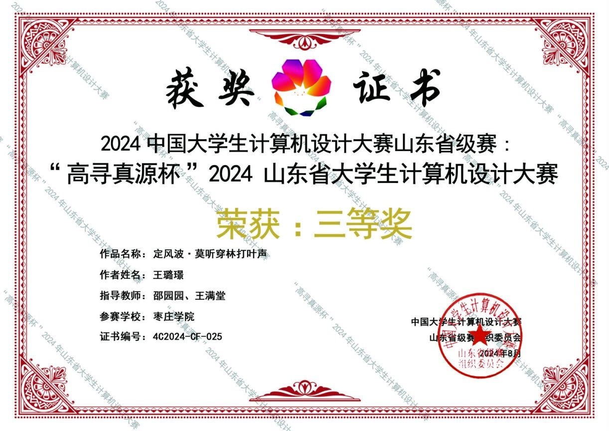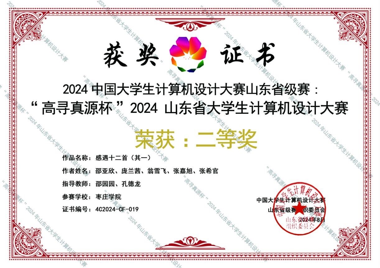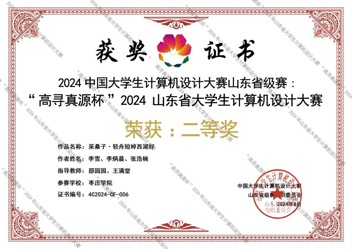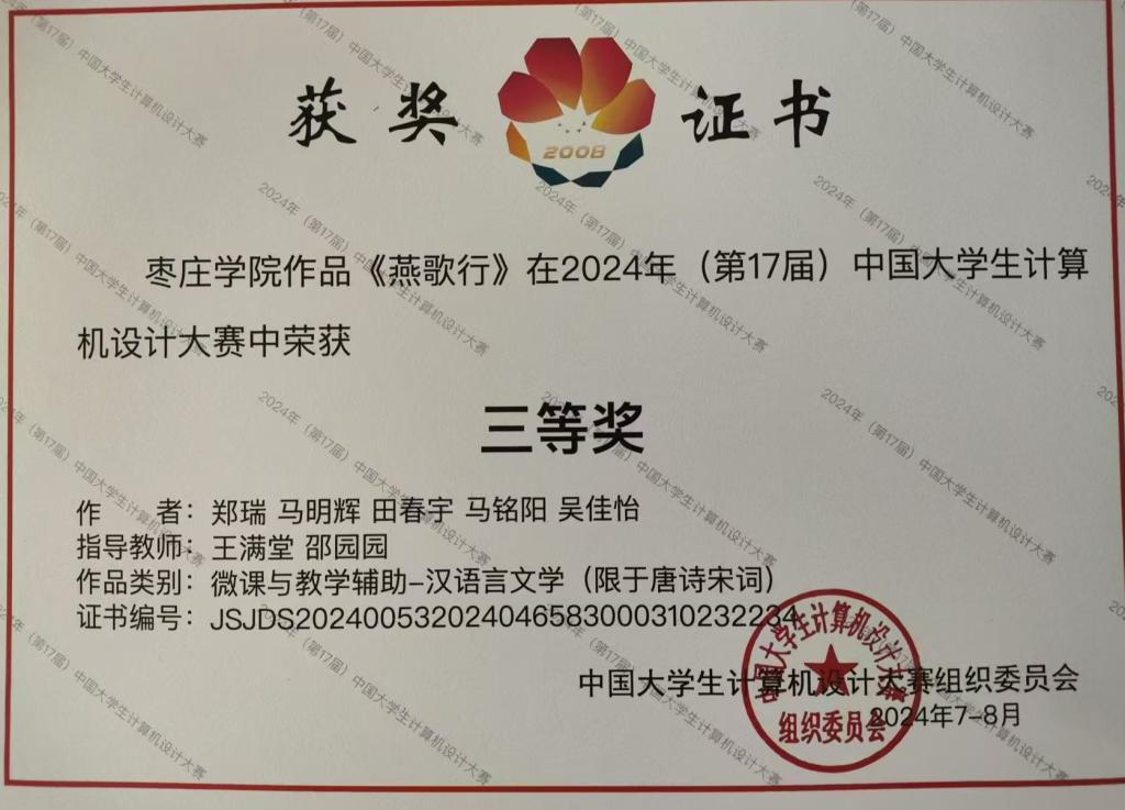 近日,2024年(第17届)中国大学生计算机设计大赛各类别赛事全面落下帷幕。我院地理信息科学专业(与中科特瑞校企合作)的学生获得全国三等奖1项,山东省一等奖1项、二等奖2项、三等奖3项的优异成绩。