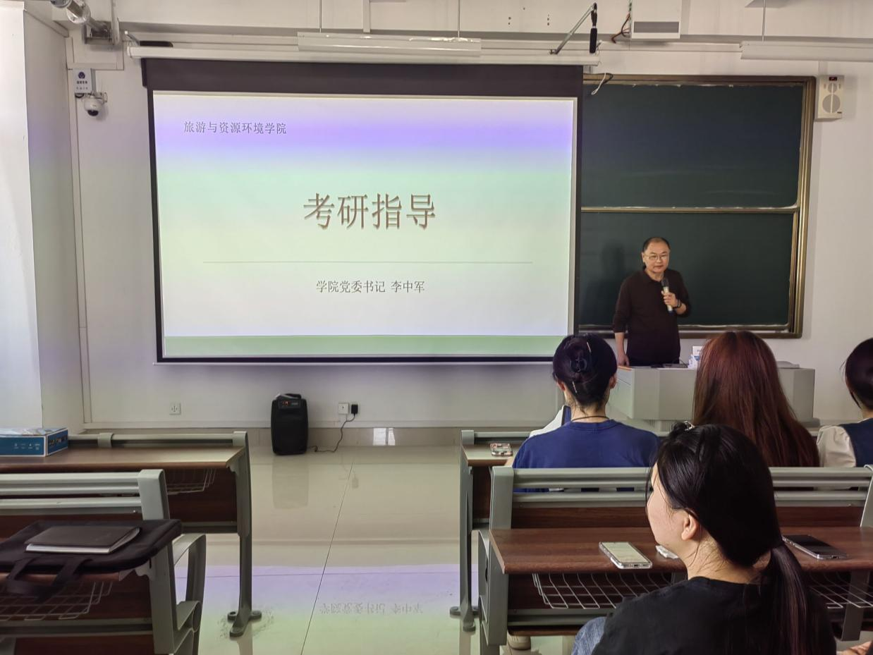 4月24日下午,yl23455永利集团在崇德楼501召开25届考研指导交流会。此次活动由院党委书记李中军主讲,21级地理科学专业学生和地理信息科学专业学生参加。