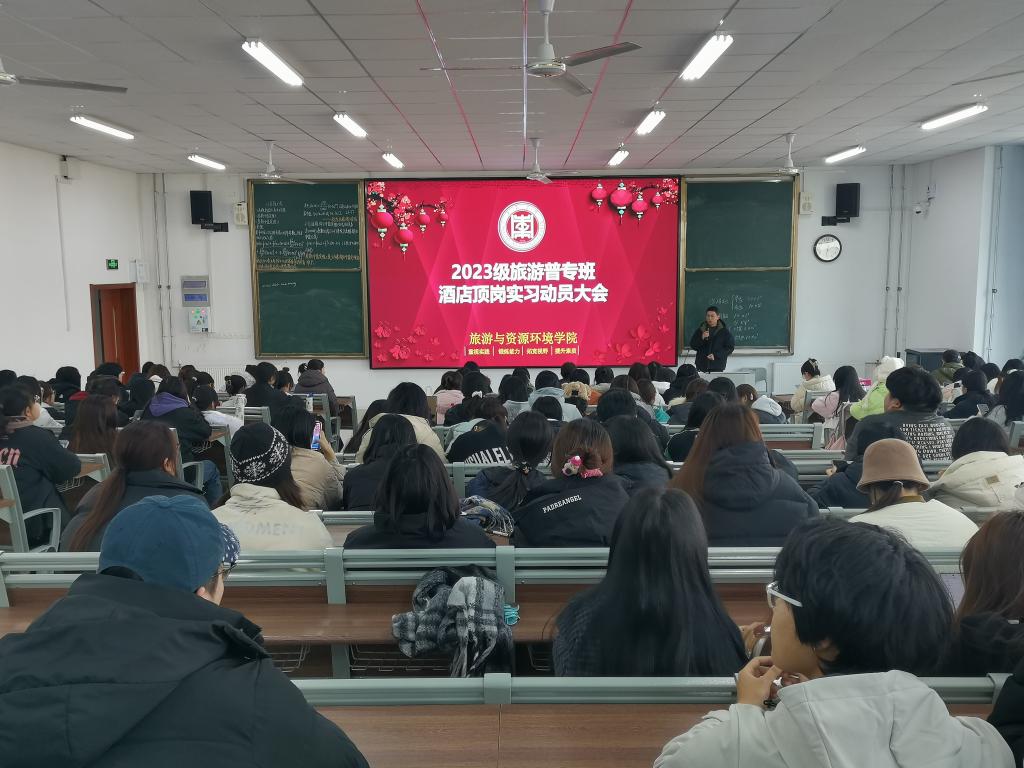 为进一步提高学生实践操作技能水平,根据2023级旅游管理(专科)人才培养要求,12月25日,yl23455永利集团在崇德楼208教室召开酒店顶岗实习动员会,学院副院长孙盼盼、相关实习负责教师和班主任辅导员以及150余名学生参加。