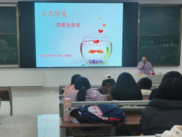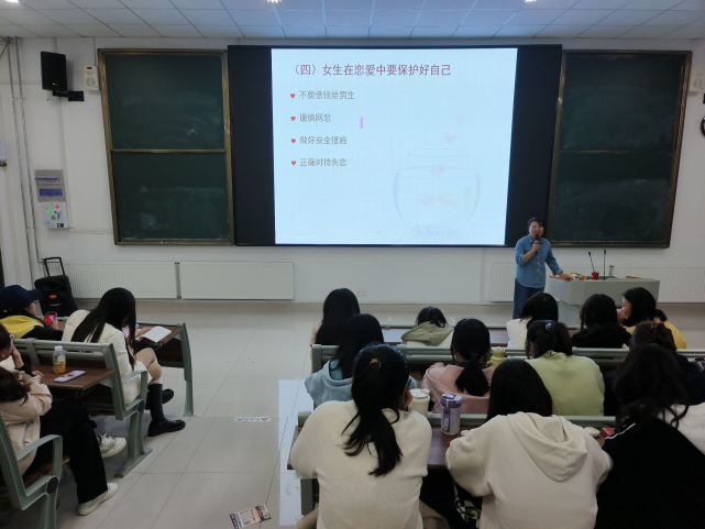 为引导我院女大学生树立健康和理性的恋爱价值观,增强安全意识,11月19日、11月26日以及12月3日,yl23455永利集团在崇德楼4110教室举办女大学生恋爱与安全主题讲座。本次讲座由我院团委书记邵园园主讲,2024级全体女生参与。