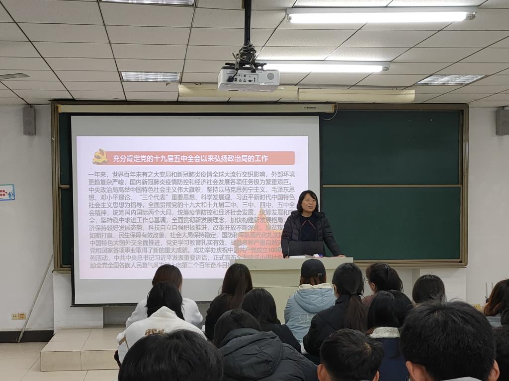 大会伊始,邵书记向同学们传达了十九届六中全会精神,从全会内容、全会形式、中国共产党的的辉煌成就以及认真学习贯彻六中全会精神的重大意义等方面展开阐释。邵书记指出,要以更高的政治站位和更强的政治自觉,深刻把握全会精神的丰富内涵和实践要求,不断增强“四个意识”、坚定“四个自信”、做到“两个维护”,立大志、明大德,成大才、担大任,不负时代、不负韶华,努力成为堪当大任的时代新人。