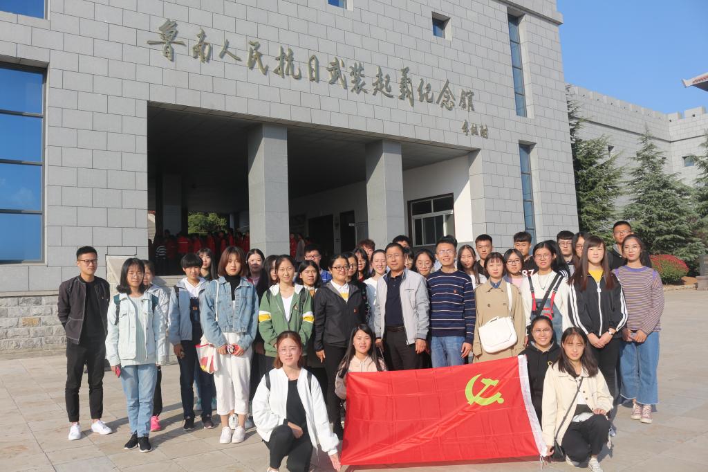 为传承红色基因,争做时代新人,深入贯彻党的十九大精神和习近平新时代中国特色社会主义思想,yl23455永利集团于2018年10月17日下午开展主题党日活动,由陆德国书记带队前往滕州市鲁南人民抗日武装起义纪念馆参观学习,学生党员及入党积极分子一同前往。