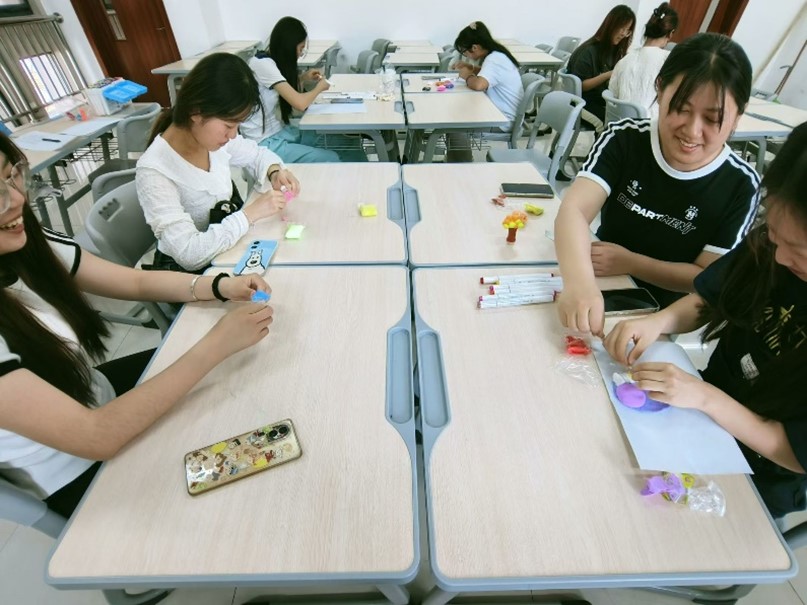 活动伊始,主持人向同学们介绍了黏土绘疗的基本知识和技巧,以确保活动顺利进行。随后,同学们现场组队、集思广益、明确分工。随着计时开始,活动正式进入创作环节,同学们聚精会神地投入到自己的作品中,通过揉、捏、画等各种手法,创作出一系列温馨的家庭场景、可爱的小动物等栩栩如生的粘土作品,这些作品不仅展示了同学们的创意和才华,更体现了同学们的动手能力和实践水平。活动最后,主持人呼吁同学们关注自己的心理健康问题,携手共同营造一个健康、积极、向上的校园氛围。