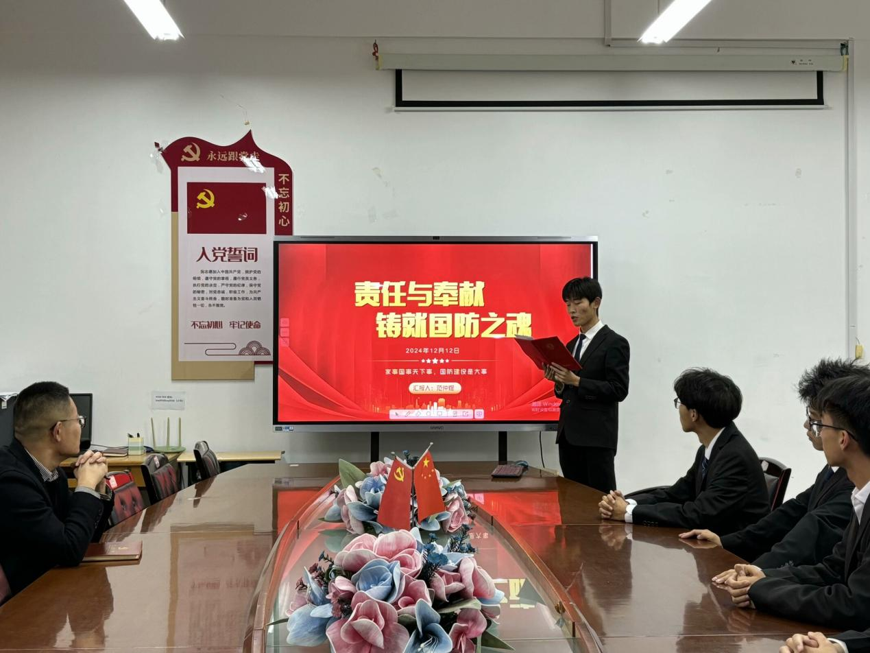 为进一步强化国防教育,引导青年学生厚植家国情怀,12月12日,yl23455永利集团学生党支部在豁然楼A415会议室开展“爱我国防”主题演讲比赛,辅导员老师范增良、周赢、冯淑鹃出席本次活动,我院学生党员积极参加。