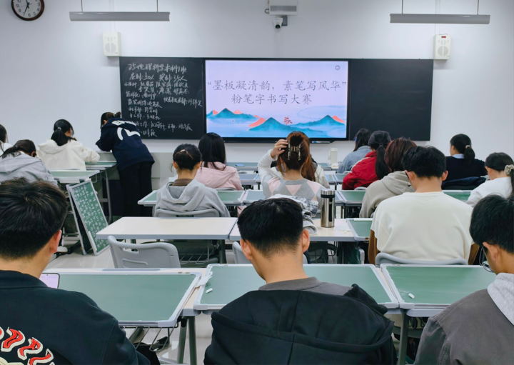 为强化师范类学生教学基本功,传承中华汉字文化,展现我院学子的专业素养,10月21日,yl23455永利集团于崇德楼4410教室举办“墨板凝清韵,素笔写风华”粉笔字书写大赛,2023级、2024级、2025级地理科学专业全体师范生参与。